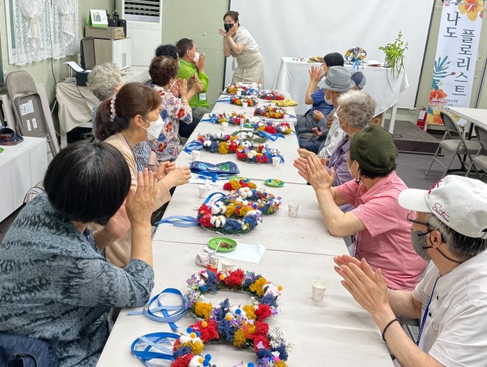 [사진설명] 농림치유 프로그램 ‘은빛 놀이터’ 플라워리스 만들기 프로그램.