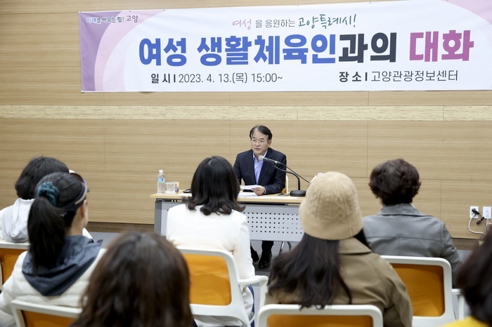 [부자동네타임즈 김인수기자] 고양특례시(시장 이동환)는 4월 13일 고양관광정보센터에서 여성 생활체육 5개 종목단체 회원 등 30여명이 참석한 가운데 생활체육 활성화를 위한 대화의 시간을 가졌다.