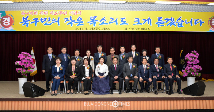 광주 북구의회는 14일 오후 2시에 북구청 3층 회의실에서 개원 26주년 기념행사를 개최하였다. 이날 행사에는 송광운 북구청장, 이은방 광주시의회 의장을 비롯해 광주시의원들과 북구 자생단체 회장 및 북구청 간부 등 300여 명이 참석했다.