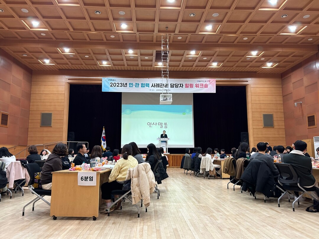 [부자동네타임즈 = 김인수 기자] 지난 23일 일산동구청 대강당에서 관내 공공 및 민간분야 사례관리담당자 70여명이 참석한 가운데 ‘민관 협력 힐링 워크숍’을 개최했다.