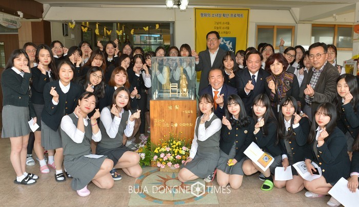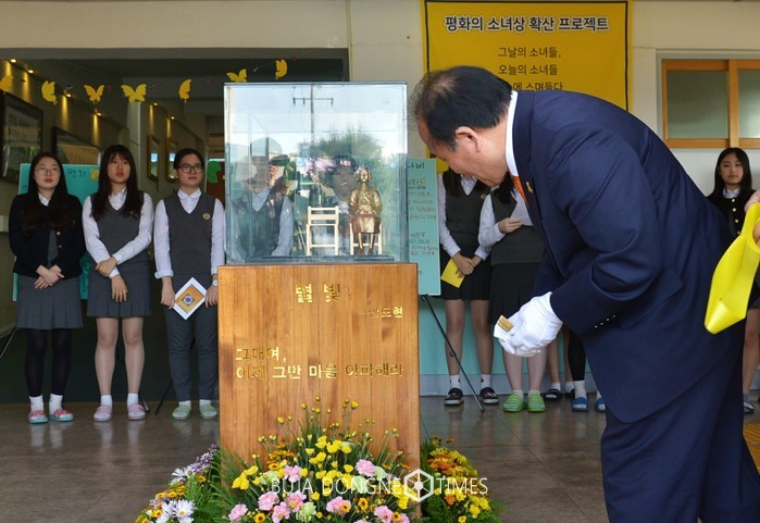- 조대여고의 '작은 소녀상' 제막식에 참석 학생회와 가람평화나비 동아리 학생 격려 -