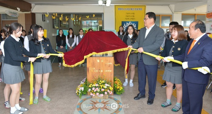조대여고 학생들은 지난 5월 광주 전남에서 유일하게 생존해 계신 곽애남 할머니를 방문한 후 6~7월 두 달간 소녀상 건립 성금을 모금해 이날 소녀상 제막식을 열었다.