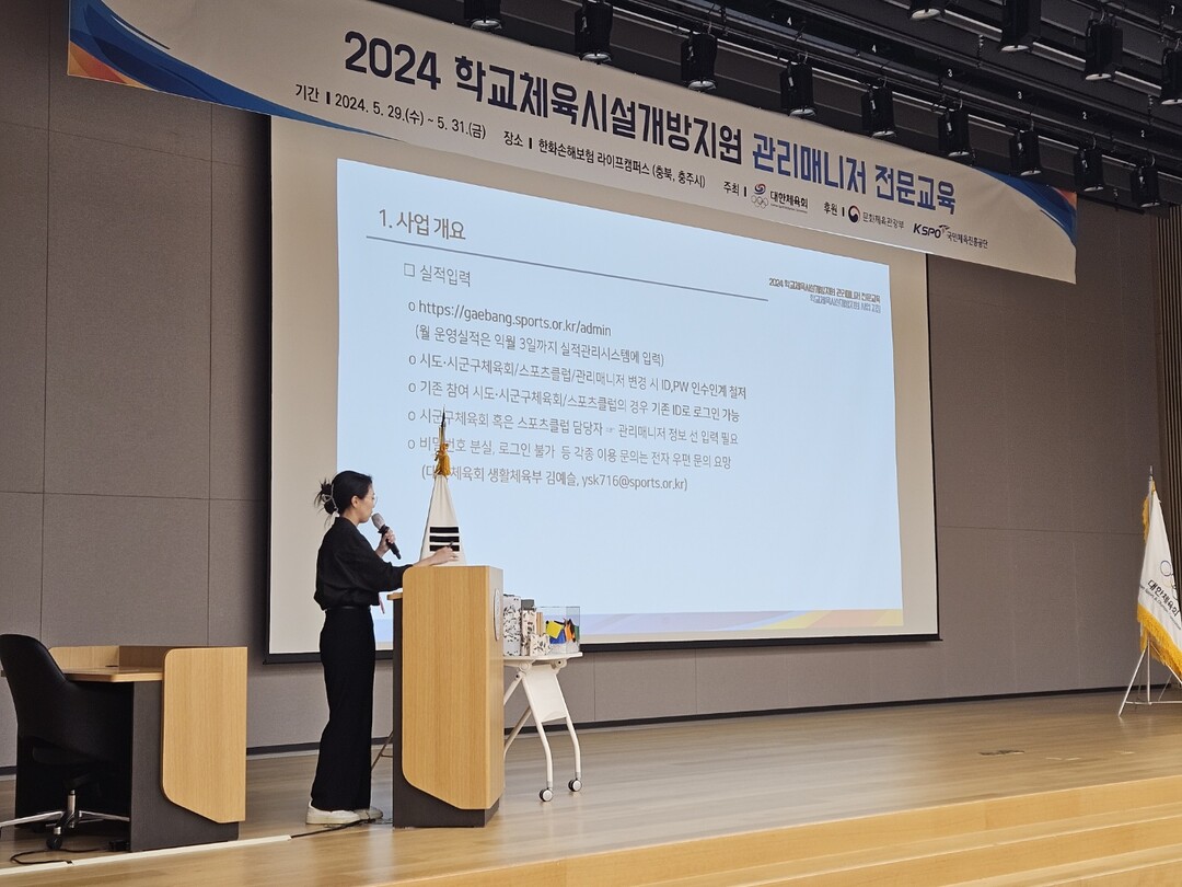 [부자동네타임즈 = 김인수 기자] 대한체육회(회장 이기흥)는 지난 5월 29일부터 5월 31일까지 ‘2024년도 학교체육시설개방지원 관리매니저 전문교육’을 개최한다.