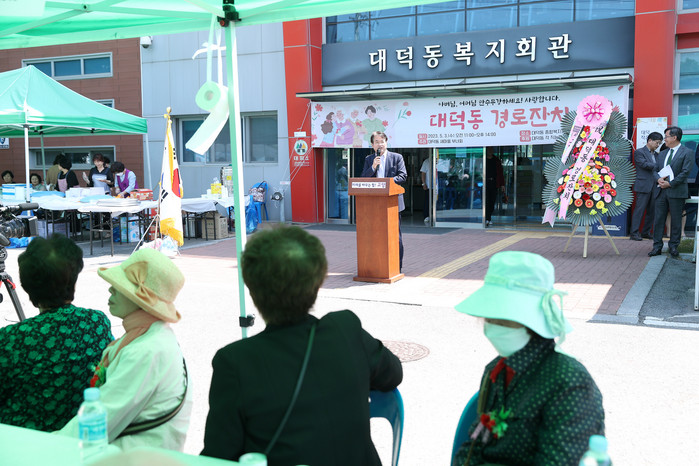 이날 경로잔치에서는 어르신들께 장수상과 효행상 표창을 수여하고 대덕동 새마을부녀회에서 정성으로 마련한 음식을 대접하였다. 또한 풍물패 공연 등 다양한 공연이 펼쳐져 분위기를 고조시켰다.
