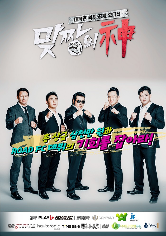 [부자동네타임즈 김인수기자] ROAD FC (로드FC), ㈜PLAY1(플레이원)이 제작하는 ‘맞짱의 신’은 재야의 싸움 고수를 발굴하는 격투 오디션 프로그램이다. ROAD FC 김대환 대표, 정문홍 전 대표에 ROAD FC 연예인 파이터 3인방 개그맨 윤형빈과 이승윤, 배우 김보성이 참여, 화제가 되고 있다.