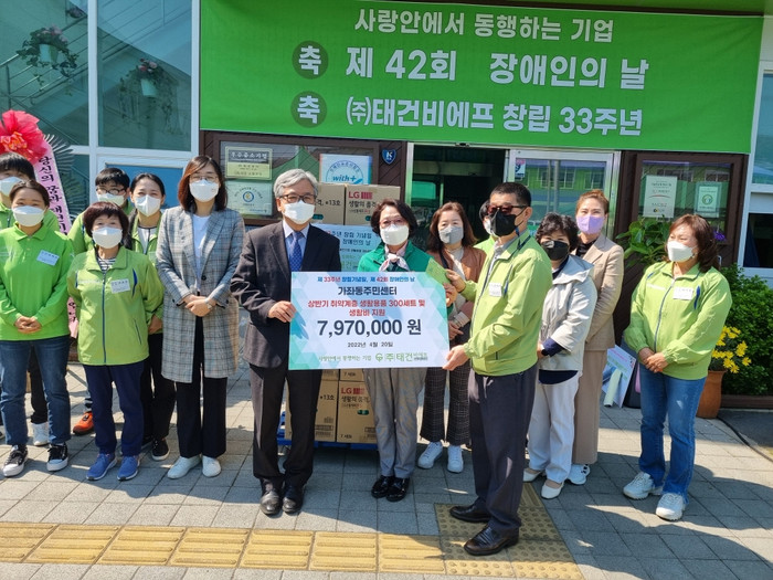 이날, 행사를 주최한 ㈜태건비에프는 제33주년 창립을 축하하고 제42회 장애인의 날을 기념해 가좌동행정복지센터 뿐만 아니라 여러 기관에 후원성금 전달식을 가졌다.
