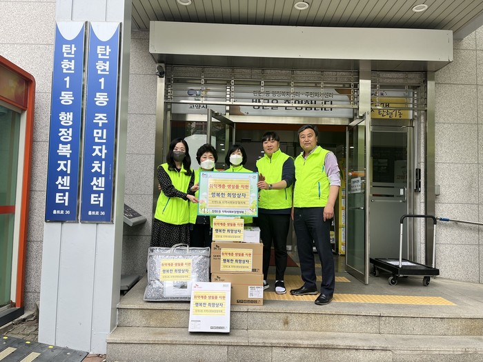 ‘행복한 희망상자’는 탄현1동 지역사회보장협의체의 특화사업이다. 코로나19, 가파른 물가상승 등으로 경제적 부담이 가중되어 생계 곤란 및 생계비 부족 등으로 꼭 필요한 생활필수품을 구입하지 못하는 관내 저소득 노인, 장애인 가구, 복지사각지대 가구 등에게 생활에 필요한 물품을 제공하여 삶의 질 향상을 도모하는 사업이다.