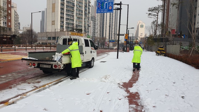 주요도로는 제설차량으로 염화칼슘을 살포했고, 인도 및 횡단보도는 능곡동 제설봉사단과 능곡동장 등이 제설작업을 실시했다.