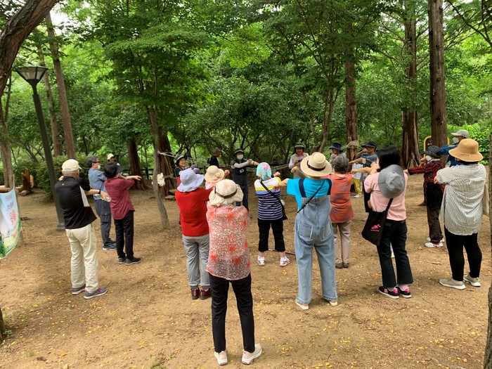 프로그램 참여자는 “숲에서 좋은 공기를 들이마시며 색다른 경험을 하니 저절로 몸과 마음이 치유되는 것 같다.”고 말했다.