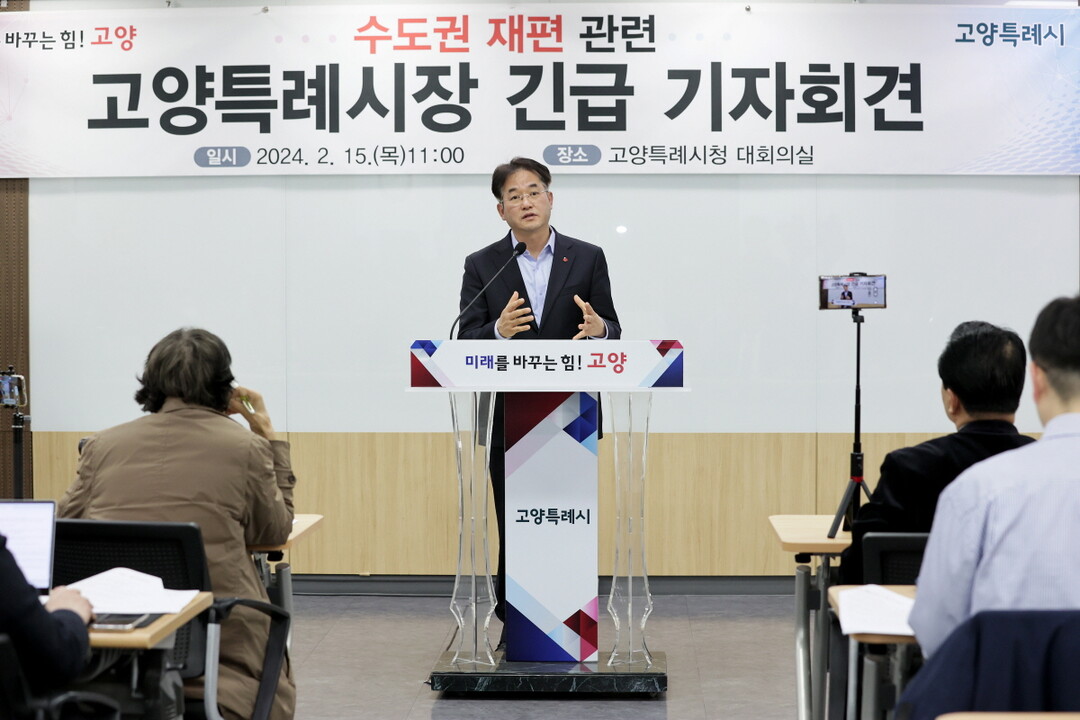 이 시장은 15일 고양특례시청에서 수도권 재편 관련 기자간담회를 갖고 수도권 재편에 대한 의견을 발표했다.