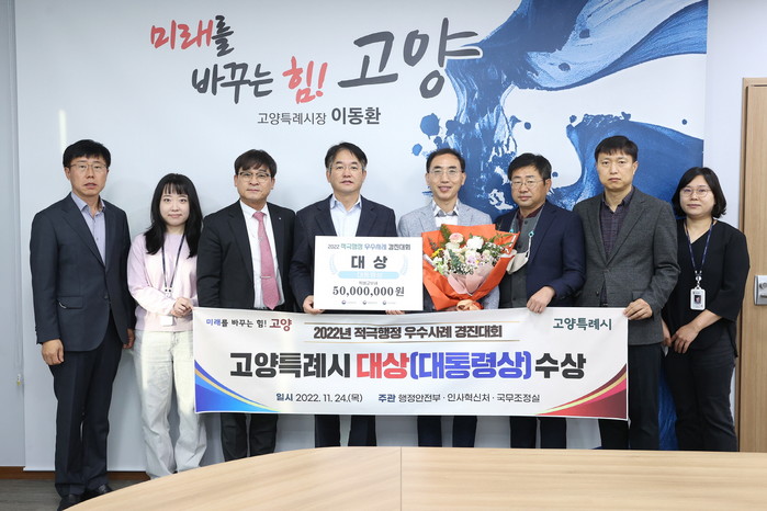 창의적인 아이디어를 발굴하는 고양시만의 차별화된 시스템으로 2022년 적극행정 우수사례에서 ‘건설 중인 건축물 내 현장사무소 설치 문제 해결’로 대통령상을 수상하였고, 고양시 정발산동 주민자치회에서 민·관 합동으로 추진한 ‘춤추는 빗자루’가 경기도 2022년 주민자치 우수사례 경연대회에서 대상을 수상했다.