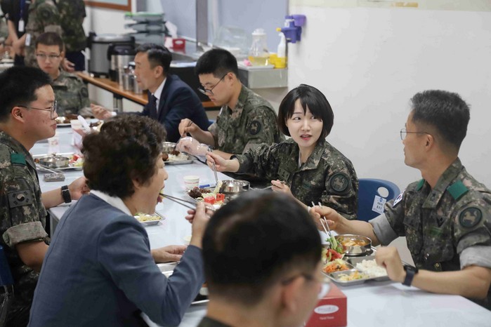 이날 군부대 방문 마지막 일정으로 9사단 장병들과 함께 식사하며 최일선에서 국가 안보를 위해 애쓰는 장병들을 직접 격려했다.