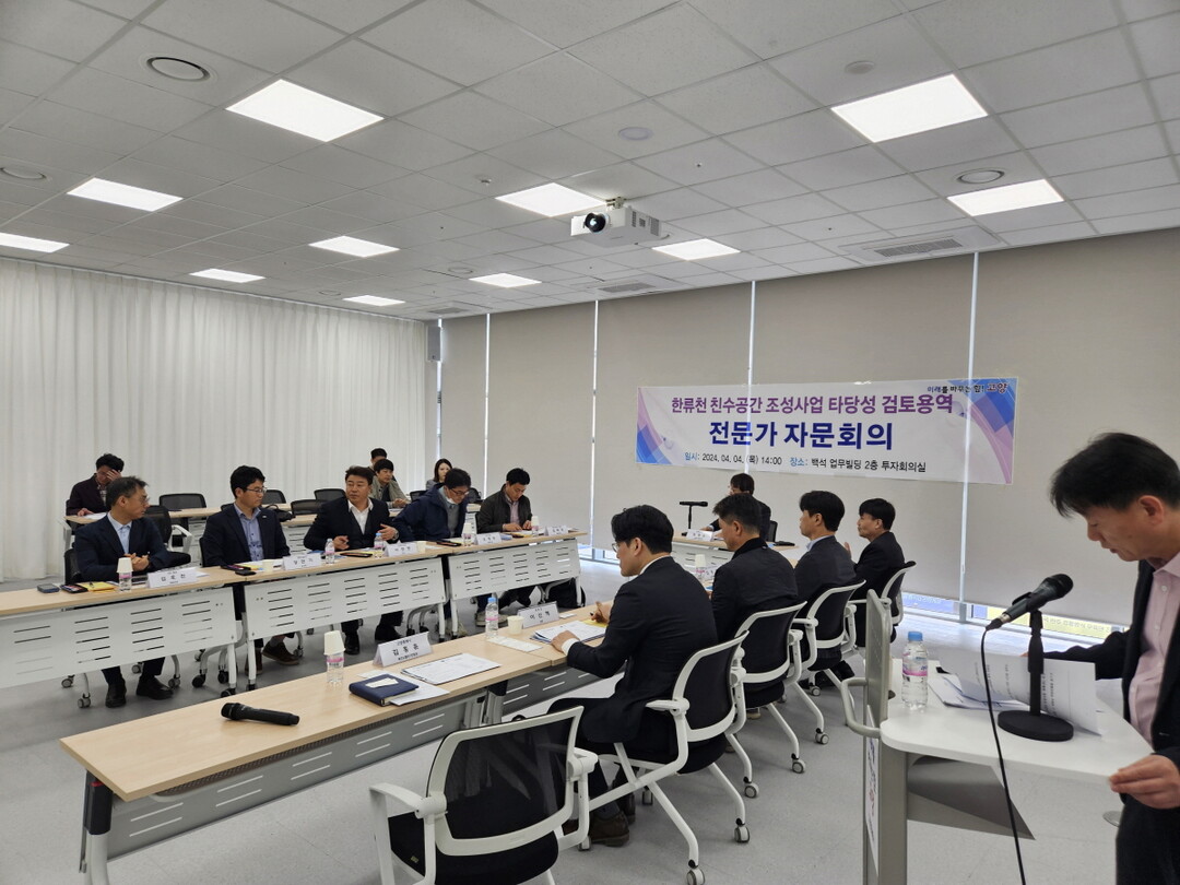 [부자동네타임즈 = 김인수 기자] 고양특례시가 지난 4일 백석업무빌딩에서 한류천 친수공간 조성사업의 최적 방안을 도출하기 위하여 전문가들과 초빙해 ‘한류천 친수공간 조성사업 전문가 자문회의’를 개최했다.