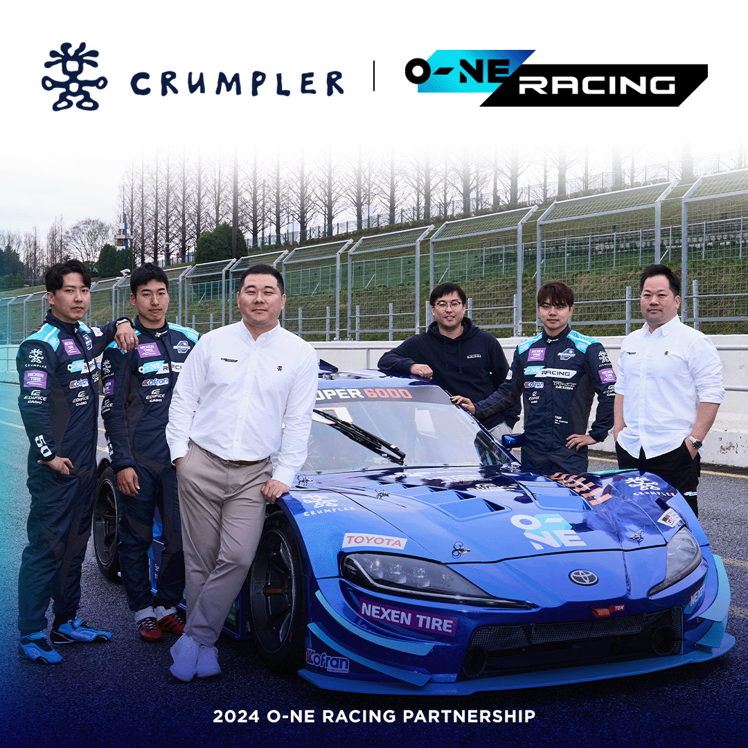 오네 레이싱 관계자는 “프리미엄 스포츠 캐주얼 브랜드 크럼플러와 공식 어패럴 후원 협약을 체결하게 되어 기쁘다.”라며 “이번 협약으로 유니폼 지원뿐만 아니라 오네 레이싱의 로고를 재해석한 컬래버레이션 (Collaboration) 제품 생산 등 다양한 공동 마케팅 활동도 계획하고 있으니 많은 기대 부탁드린다.”라고 밝혔다.