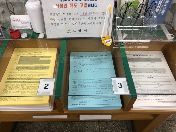 [부자동네타임즈 김인수기자] 고양시 마두1동 행정복지센터(동장 김경희)는 주민들에게 정확하고 편리한 민원 업무를 제공하기 위하여 민원실에 색깔이 있는 신청서를 제작·비치하여 좋은 반응을 얻고 있다.