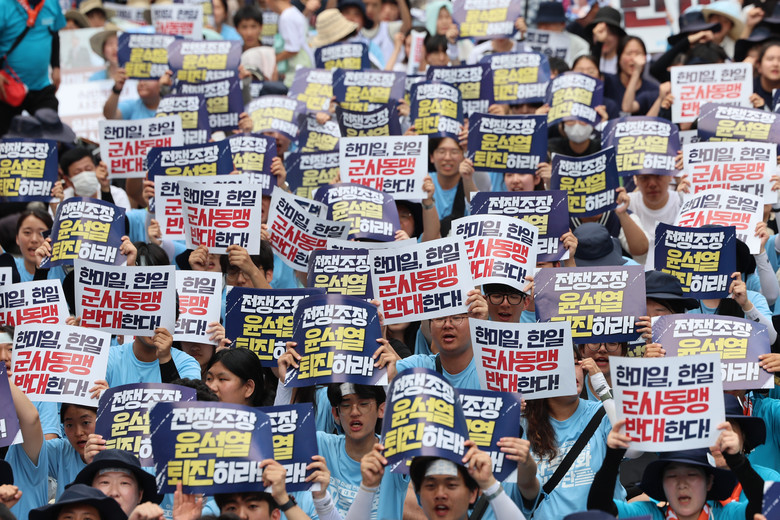 이들은 최근 군의 대북 확성기 재개와 북한의 대남 오물풍선 살포 등으로 군사 충돌 가능성이 커지고 있다며 책임 주체인 윤석열 정권이 퇴진해야 한다고도 주장했다.