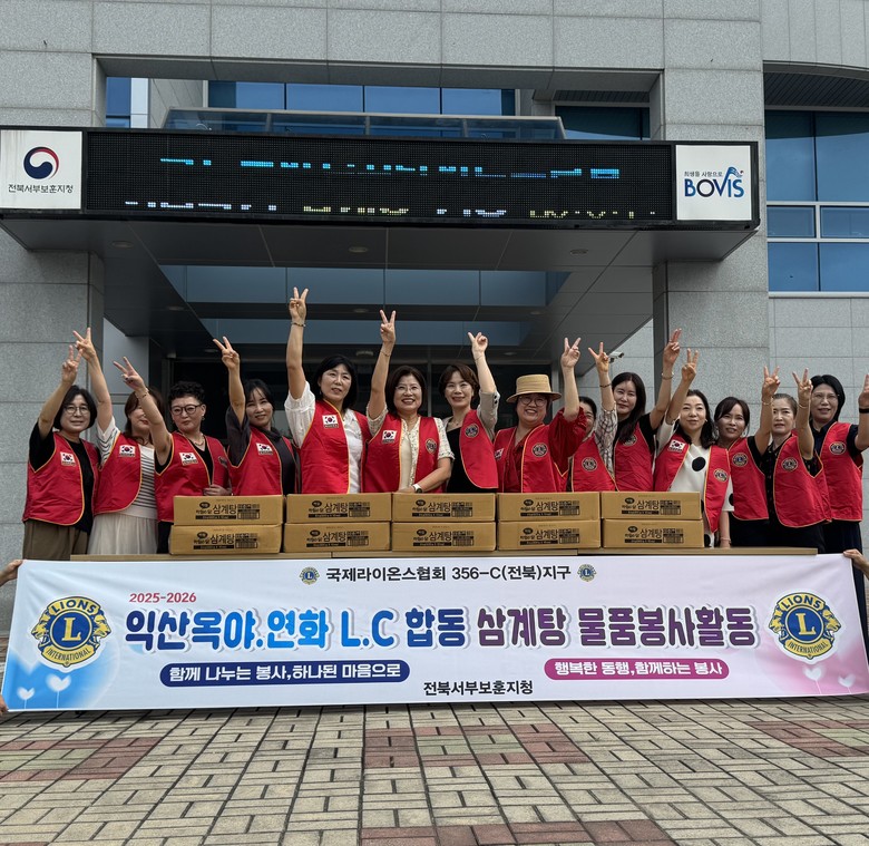 [익산=세계타임즈 = 이영임 기자] 익산연화라이온스클럽(회장 윤지원)과 익산옥야라이온스클럽(회장 김현중)은 지난 7일 전북서부보훈지청을 찾아 삼계탕 100인분(약 120만 원 상당)을 전달했다.