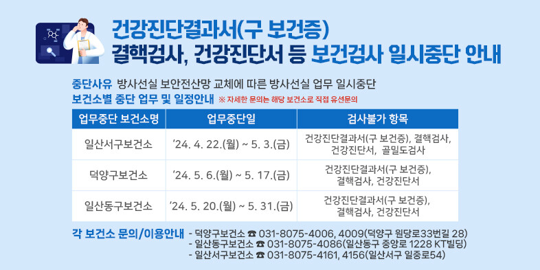 고양특례시, 건강진단결과서·결핵검사 업무 등 일시중단.