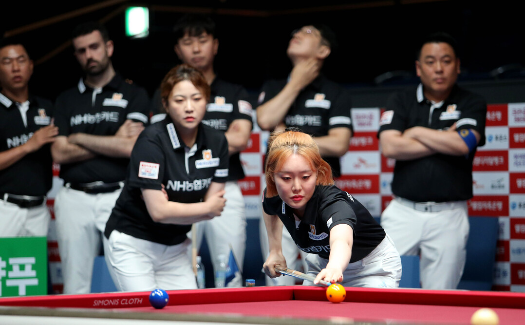 패배에 몰린 블루원은 ‘최강 복식’ 강민구와 스롱 피아비(캄보디아)가 4세트 혼합복식서 오성욱-김보미를 9:8(9이닝) 1점차로 신승을 거두고 추격을 시작했다. 곧바로 강민구가 5세트서 조재호를 상대로 3이닝만에 ‘끝내기 하이런’ 9득점을 쓸어담으며 11:2로 따낸 데 이어 6세트 스롱이 김민아에 하이런 5점으로 9:7(8이닝) 승리, 세트스코어 3:3 균형을 맞췄다.
