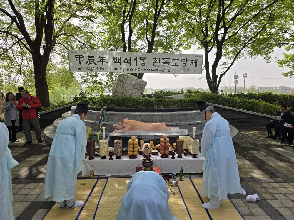 [부자동네타임즈 = 김인수 기자] 일산동구 백석1은 지난 17일(음력 3월 9일) 고양특례시 흰돌도당민속보전위원회(위원장 이석구)가 백석동에 위치한 흰돌보전지에서 ‘갑진년(甲辰年) 흰돌도당제’를 개최했다고 밝혔다.