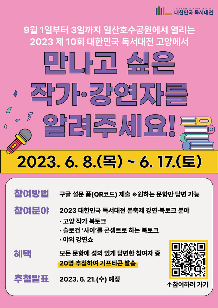 2023 제10회 대한민국 독서대전 강연·북토크 분야 설문조사 실시.