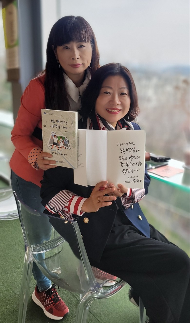▲더라이언엔터테인먼트 박영실대표와 황정희작가