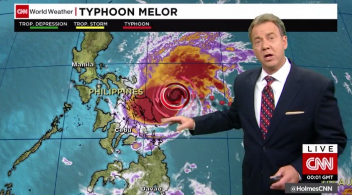 | △ 필리핀에 불어 닥친 태풍 '멜로르'의 영향으로 14일(현지시간) 주민 75만 명이 대피했다. 사진은 CNN 보도 화면 캡처. |
