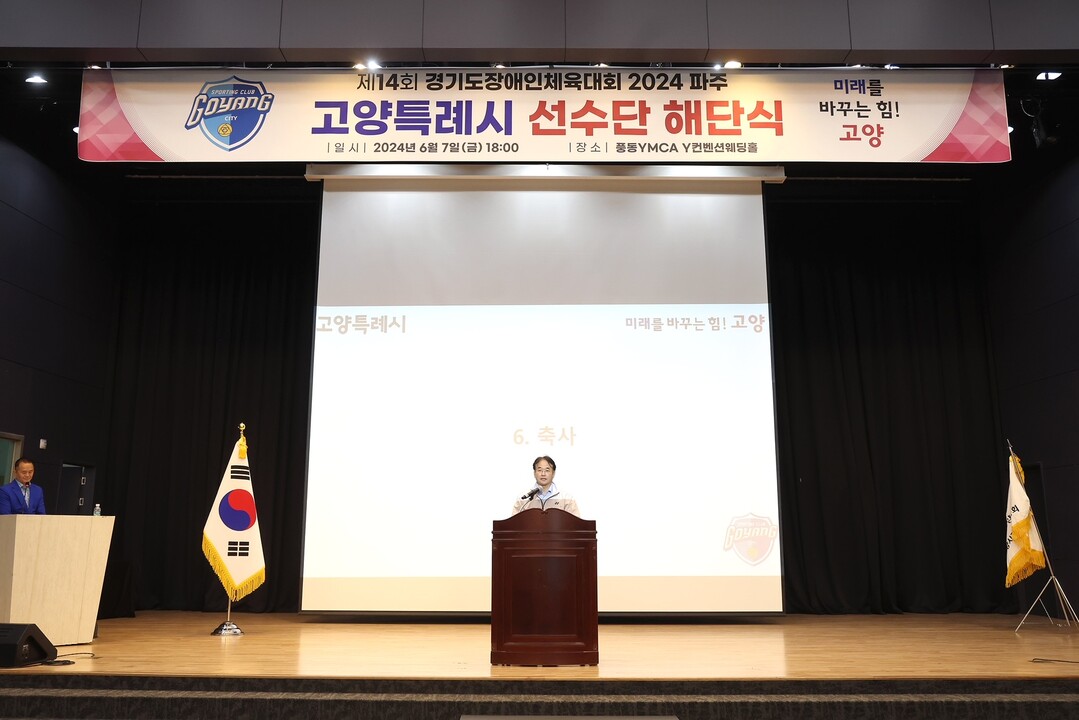 [부자동네타임즈 = 김인수 기자] 고양특례시는 지난 7일 YMCA 고양국제청소년문화센터에서 ‘제14회 경기도장애인체육대회 2024 파주’에 참가했던 고양특례시 장애인체육선수단의 해단식을 개최했다고 밝혔다.