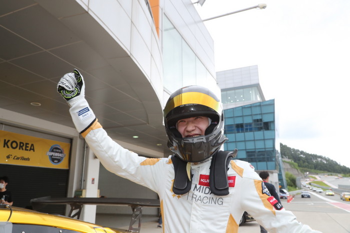 [사진설명] 볼트킴 김규민이 실제 레이스에서도 2위에 오르며 기쁨을 표현하고 있다.
