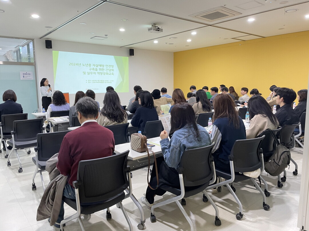[부자동네타임즈 = 김인수 기자] 고양특례시 고양시자살예방센터가 지난 5일 고양시어린이박물관 1층 다목적실에서 노년층에게 서비스를 제공하는 유관기관 실무자 36명을 대상으로 ‘노년층 자살예방 안전망 구축을 위한 유관기관 간담회 및 실무자 역량강화교육’을 실시했다.