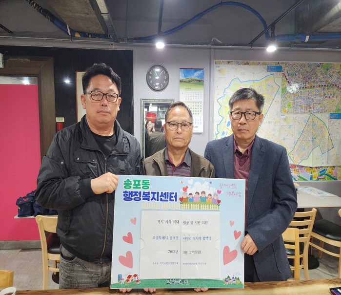 [부자동네타임즈 김인수기자] 고양특례시 송포동 지역사회보장협의체는 지난 3월 27일 비영리 민간단체 작은나눔과 복지사각지대 해소 및 고독사 예방을 위한 ‘사랑의 도시락 나눔’ 후원 협약을 체결했다.