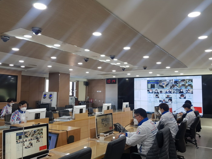 [사진설명] 1월 21일 고양시청 재난상황실에서 열린 2022 고양 세계태권도품새선수권대회 성공개최를 위한 화상 간담회.