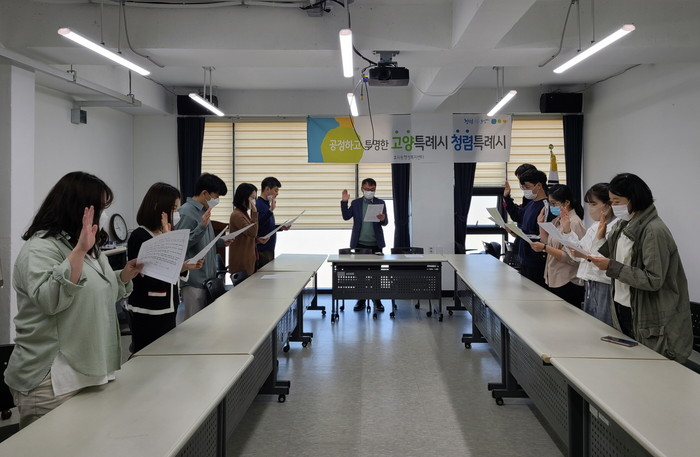 직원들은 “고양시 공직자로서 깨끗하고 투명한 고양시를 만들기 위해 부패를 근절하고, 청렴한 조직문화를 조성하는 데 모범이 될 것”을 다짐했으며, 조재현 효자동장은 “공직자의 청렴함이 중요시되는 만큼 앞으로도 정기적으로 청렴 선서를 통해 조직 내 청렴문화를 정착시키겠다”고 말했다.