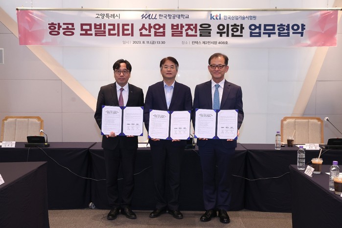협약식에는 이동환 고양특례시장과 허희영 한국항공대학교 총장, 김세종 한국산업기술시험원 원장이 참석했다.