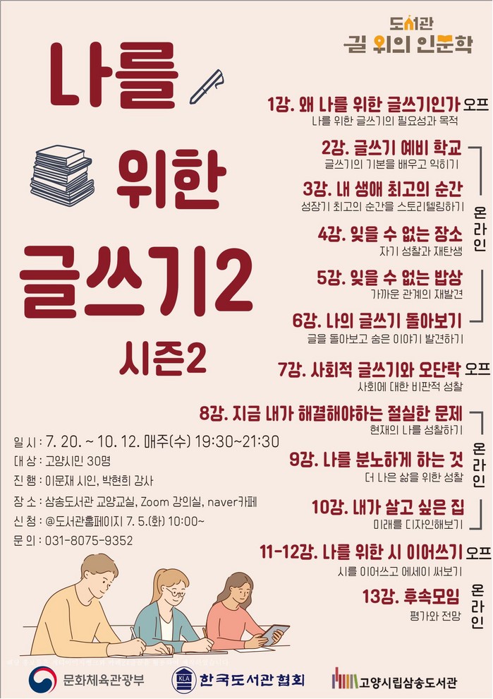고양 삼송도서관, ‘나를 위한 글쓰기2 시즌2’ 운영.