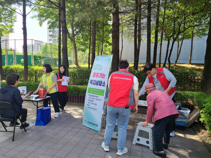 [부자동네타임즈 김인수기자] 고양특례시 주엽2동 행정복지센터(동장 박교원)는 지난 17일 복지사각지대에 있는 위기가구 발굴 등의 홍보를 위해 관내 문촌공원에서‘찾아가는 복지상담소’를 운영했다.