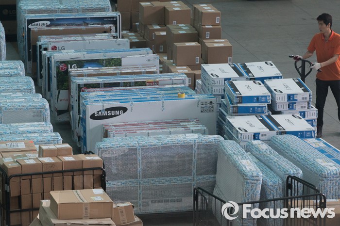 (영종도=포커스뉴스) 11일 인천 중구 AMB물류센터 내에 위치한 CJ대한통운 인천공항 특송통관장에서 직원들이 해외 직접구매로 배송된 블랙프라이데이 관련 물품들을 정리하고 있다.