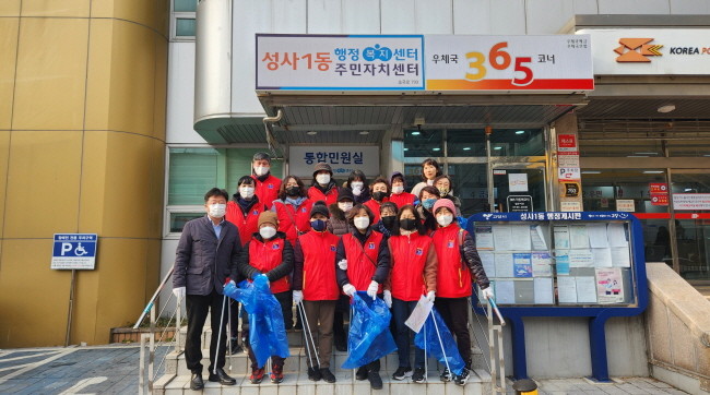 정준배 성사1동장은 “추운 날씨에도 설맞이 대청소에 참여해주신 모든 분들께 감사 인사를 드리며, 앞으로도 민·관이 함께 협력하여 깨끗한 마을 환경을 유지하도록 힘쓰겠다.”고 전했다.