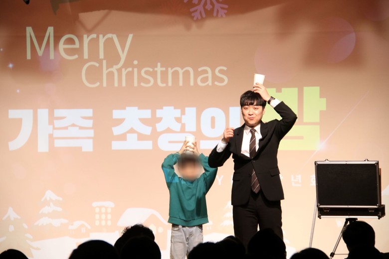 | ▲지난 22일 신천지 영등포교회 장년회가 개최한 ‘장년회와 함께 패밀리 파티’ 행사장에서 마술 공연을 선보이고 있다. [사진 제공 = 신천지 영등포교회] |