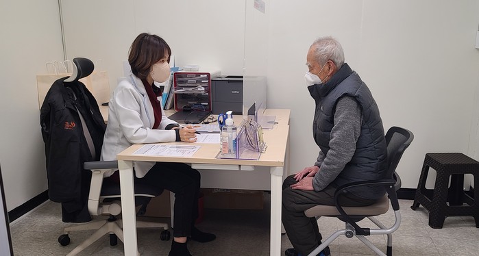 [사진설명] 주민이 찾아가는 치매조기검진서비스를 받고 있다.