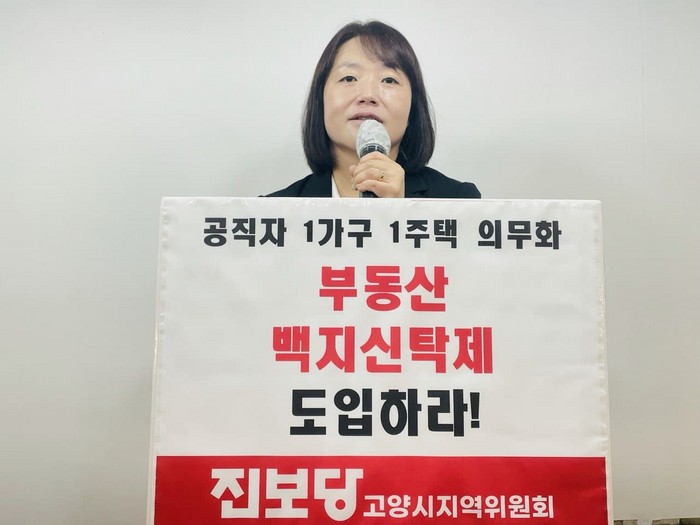 또한 "주거용 1주택을 제외하고는 소유를 금지하는 부동산 백지신탁제를 지방의회부터 도입해 근원적인 부동산투기를 근절해야 한다."고 했으며 "국회의원의 부동산 전수조사처럼 고양시장, 시도의원등 관내 선출직 공직자의 부동산을 전수조사해야 한다"고 주장하였다.