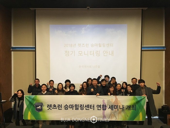 [부자동네타임즈 신동현 기자]지난 14일(목) 한국마사회(회장 이양호) 렛츠런 승마힐링센터는 충남 홍성군 승마장에서 재활 힐링 승마를 주제로 ’렛츠런 승마힐링센터 연합 세미나’를 개최했다.