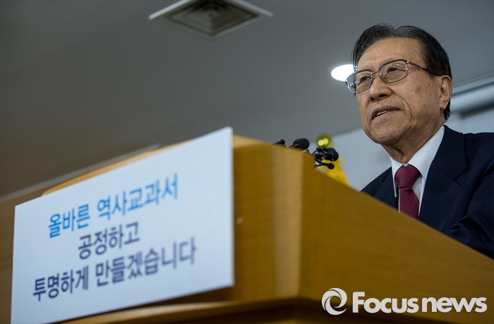 (서울=포커스뉴스) 김정배 국사편찬위원회 위원장이 4일 오전 서울 종로구 세종대로 정부서울청사 브리핑룸에서 올바른 역사교과서 개발 관련 발표를 하고 있다.