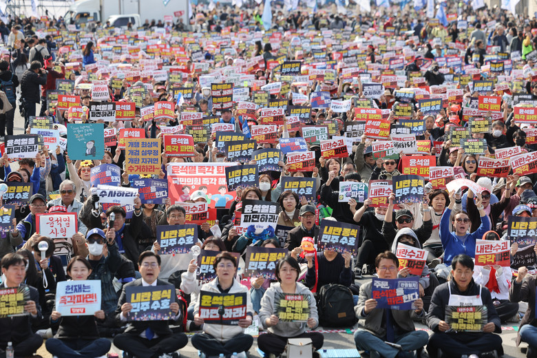 헌법재판소의 윤석열  탄핵심판 선고를 앞둔 15일 서울 도심 곳곳에서 탄핵 찬반 진영의 대규모 집회가 열렸다.선고일을 지정하지 않았지만 임박했다는 전망도 나오는 가운데 양 진영은 이번이 선고 전 마지막 주말 집회일 수도 있다고 보고 총력전을 펼쳤다.
