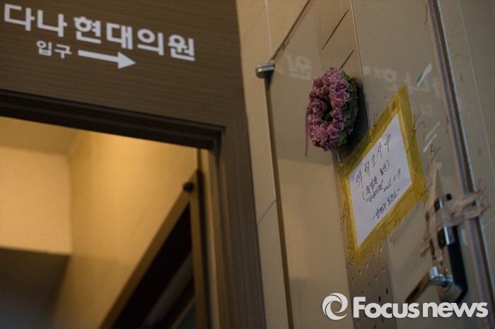(서울=포커스뉴스) 20일 오후 서울 양천구 다나현대의원에서 C형간염 바이러스가 발생해 병원 입구가 폐쇄되고 있다. 질병관리본부는 병원 이용자 18명이 C형간염 바이러스에 감염된 사실이 확인됐다고 이날 밝혔고, 현재 역학조사를 진행중이다.