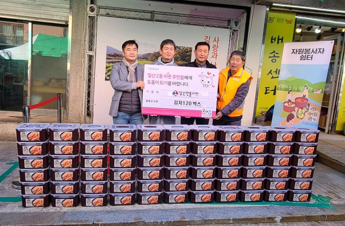 [부자동네타임즈 김인수기자] 고양특례시 일산2동 행정복지센터(동장 백진규)는 지난 4일 일산전통시장 상인회로부터 겨울 김장김치 120박스를 전달받았다.