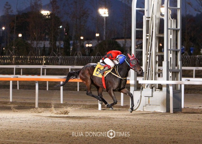 ‘코디악러브’는 종반 걸음이 무뎌지며 뒤처지고 ‘베스트로드’와 ‘장산시티’ 두 마리의 선두 싸움이 시작되었다. 박진감 넘치는 경쟁 끝에 거의 동시에 결승선을 통과했고 승자는 ‘장산시티’였다. 목차(약 60cm)의 명승부였다. 3위는 멋진 추입으로 ‘프리티보이(4세, 거, 한국, R68)가 차지했다.