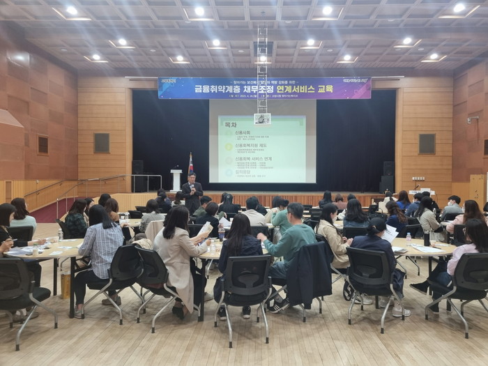 이날 교육은 신용회복위원회 임채주 지부장과 경기도서민금융복지지원센터 신혜성 상담위원이 진행했다. 교육은 △금융복지의 개념 △기관별 채무자 구제제도의 소개 △기관별 채무 조정제도의 차이점을 중심으로 각 기관에서 제공하고 있는 서비스의 연계 방법과 채무 상담의 구체적 사례 제시를 통해 실무자들의 호응과 이해를 높였다.