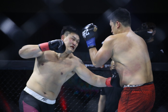 입식 무제한급 타이틀전 유양래(로닌크루짐/더블지FC) VS 명현만(AFC) 메인 6경기가 진행 되였다. 경기 결과는  3라운드 54초 펀치에 의한 KO 승으로 레드 코너 ‘명승사자’ 명현만 선수가 승리했습니다.