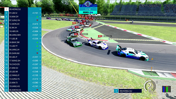 [사진설명] 2021 삼성화재 e슈퍼레이스 챔피언십 4라운드 우승자 홍선의가 선두를 유지한 채 경기를 이끌어가고 있다.